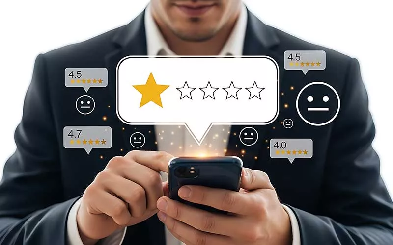76 % der Verbraucher lesen regelmäßig Online-Bewertungen, wenn sie nach lokalen Unternehmen suchen. 87 % der Verbraucher würden ein Unternehmen mit einer durchschnittlichen Bewertung von weniger als 3 Sternen nicht in Betracht ziehen.